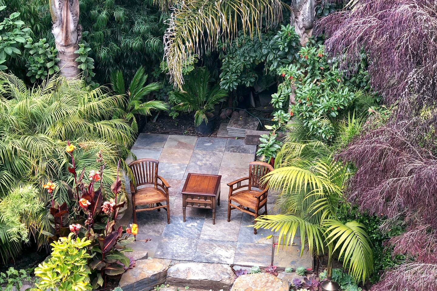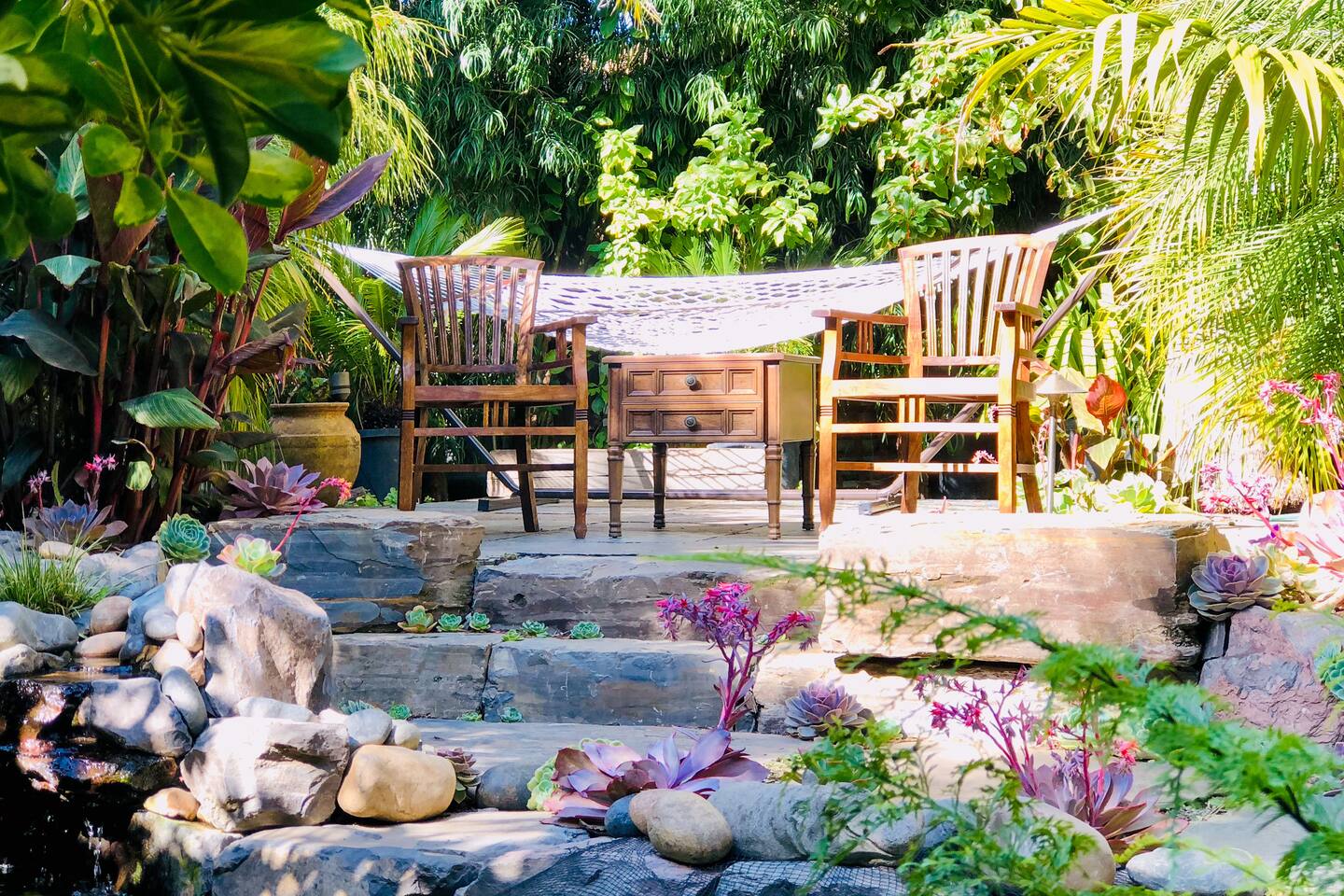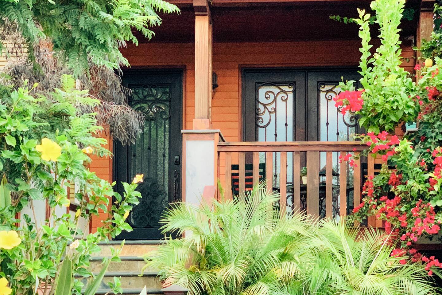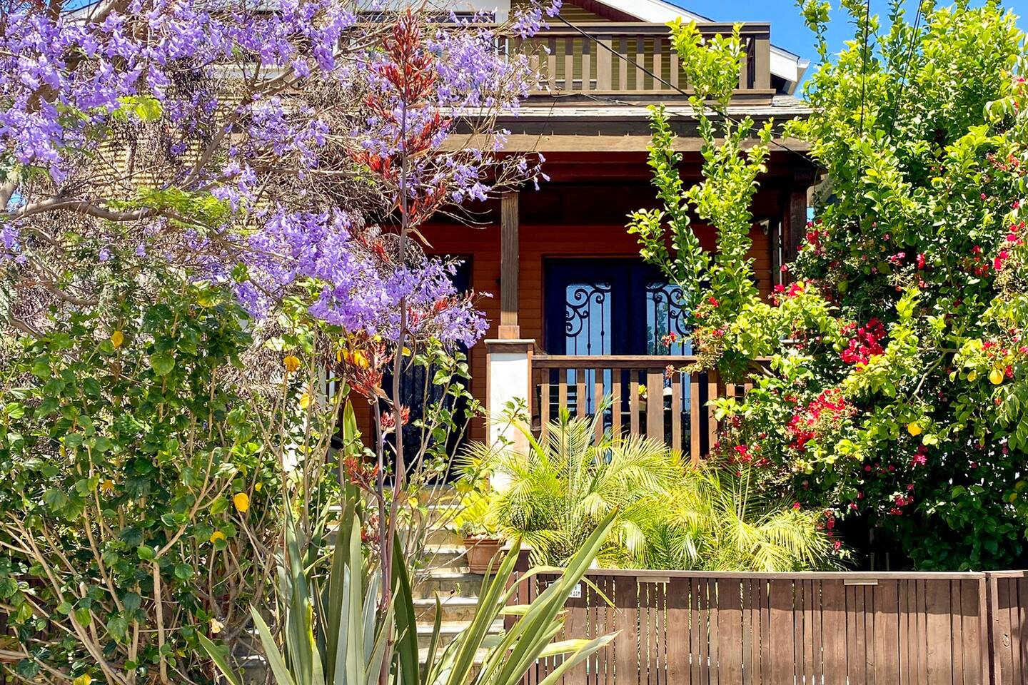 Wander home through the French wrought - iron gates and step back in this turn of the century 1910 California Craftsman spacious and beautifully updated apartment. It’s a private unit, within our house with a separate entrance and a lovely terrace. Meditate by the koi fish pond, read a book in the hammock, immerse in the serenety of the gardens, sip a coffee on the terrace, all surrounded by greenery and birdsongs. It’s a peaceful retreat. Business PRO INTERNET 🛜 FREE and Easy street PARKING.