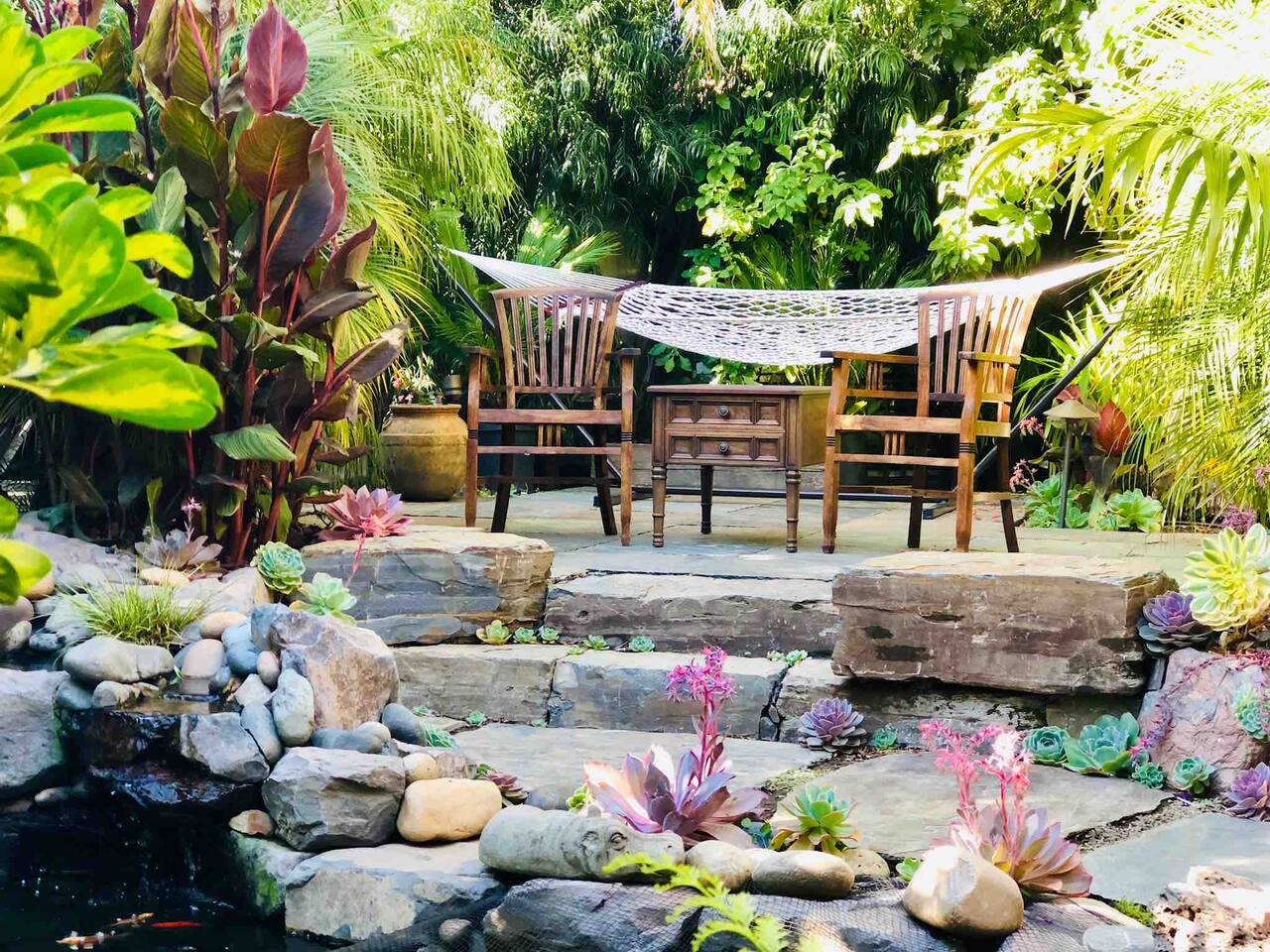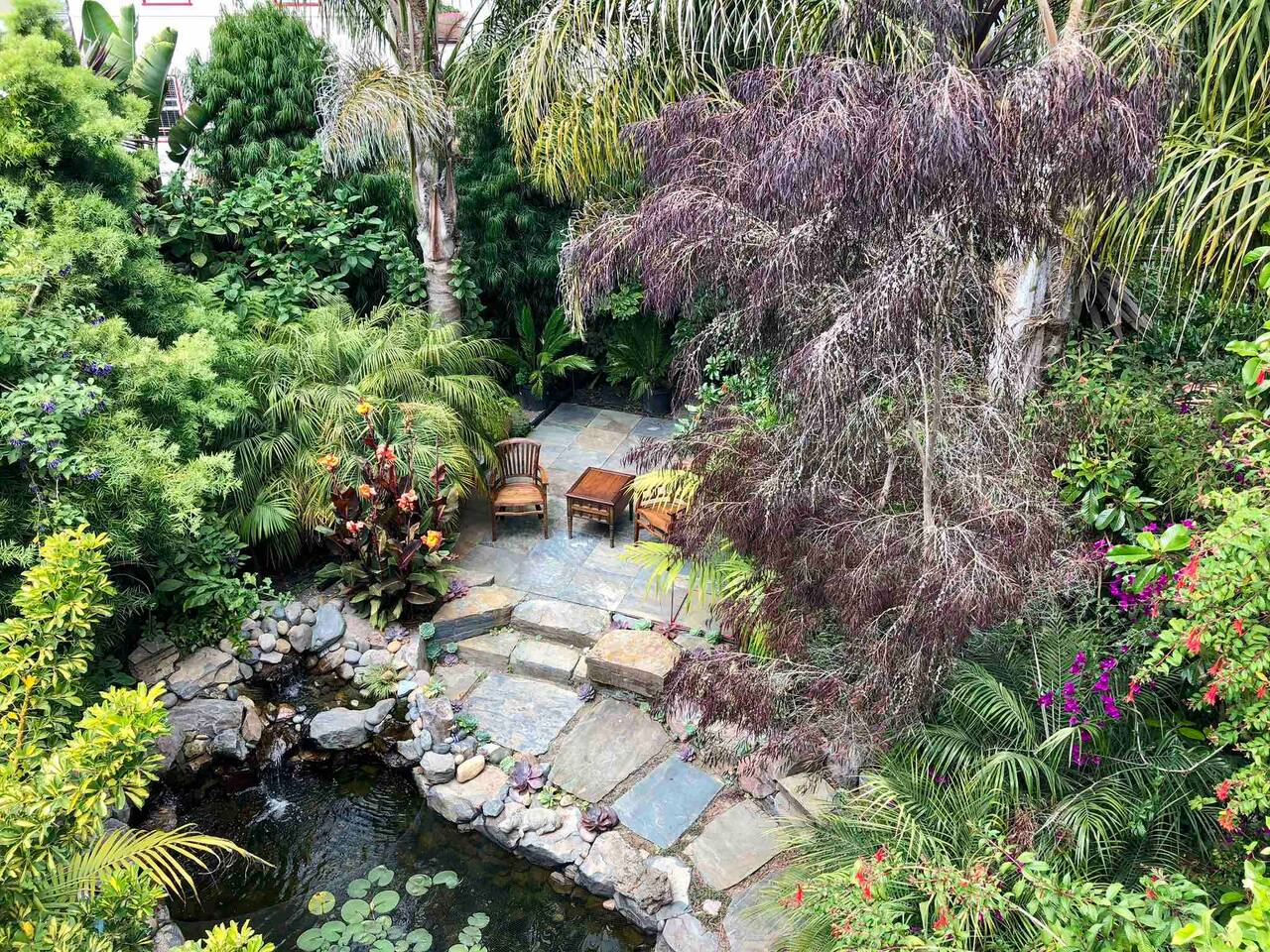 Dream BIG in a TINY home! Garden Studio | SOLO retreat. A Modern & Minimalist TINY studio - tucked away in the back of our Craftsman. The tropical garden is your living room. Roll in the hammock under the palm trees with a book, immerse yourself in the lush gardens, meditate surrounded by flowers and songbirds, fall to sleep to the sound of the koi fish Lilly pond waterfall. A hidden gem, close to shops, restaurants; 10-20 min drive to San Francisco, Berkeley, Oakland. FREE street PARKING!