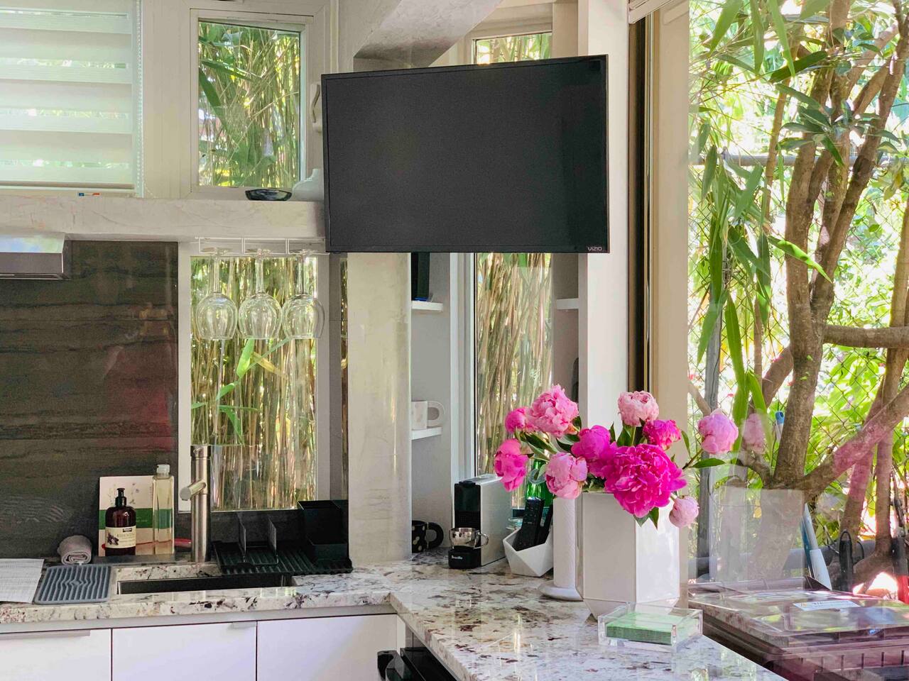The Lily Pad, a TINY minimalist Studio, is nestled in the back tropical gardens of our 1910 Craftsman house. It offers breathtaking views of the koi fish lily pond and is surrounded by flowers and lush greenery. It’s the perfect self-care / solo escape /writers / artist creative meditation retreat. Perfect opportunity to unplug and restore. It’s an unique, serene and a peaceful experience, yet a walking distance to several local restaurants, boutiques, cinema, shops and bars.🌿 🦋 Great for a SINGLE traveler who loves the minimalist lifestyle and is clean and organized! MAX OCCUPANCY is 1 person at all times! It’s the perfect SOLO escape for people who love the minimalist lifestyle and who are KIND, CLEAN and ORGANIZE! Perfect for people traveling light. 🧳 🦋 “…Since the thing perhaps is to eat flowers/and not to be afraid. - e.e. cummings 🦋 We share our backyard with our guests. *** Note 🦋: The Lily Pad is our TINY studio. If you need a more spacious place, look into booking our other listings. Some are in the same location and range in size, amenities and price. Here is the link to compare: http://www.airbnb.com/p/modernlivinginsanfranciscobay *** The Lily Pad is sporting clean design lines, hydronic heated floors, Venetian Plaster, comfortable, convertible setting, amazing views, beautiful custom touches and our love for open, modern and sustainable living. With its floor - to ceiling glass walls, it blurs the indoor and outdoor and creates an unique contemporary atmosphere with the serenity of an urban oasis. Get lost in the greenery and experience our new TINY Modern and Minimalist Garden Guest Studio with a comfortable double Murphy bed converting into a sofa. 🌿 🍃 Nikolay and I have been obsessed with sustainable, tiny living while optimizing space, functionality , esthetics and minimizing our carbon footprint for quite some time now. It’s a showcase of our love to minimalism, sustainability, functionality, esthetics, space utilization, serenity and outdoor living. Finally, we are happy to present our first tiny studio design - The Lily Pad and although tiny, is big on style and has a green thumb! 🙂🍃 Here functionality meets design with minimum impact in mind. We are constantly striving to minimize our carbon footprint and we have implemented several green solutions throughout the build and design process - hydronic radiant heat, reclaimed wood and materials, eco-insulation, reclaimed glass windows and doors, etc. 🌿 The tiny, minimalist space is meant to make one reconnect with nature - just watch the birds bathing or the fish playing with the light reflections in the water. 🌿 It’s an ideal place for artists, writers, business travelers, and nature enthusiasts who crave the tranquility of Mother Nature at their fingertips, lulled to sleep by the soothing sound of water just outside their windows. 🌿 It’s located in the heart of Emeryville, bordering Oakland - just across San Francisco, off Bay Bridge. It’s close to highways, shops, movie theater, local restaurants and shops: • 15 min drive to downtown San Francisco; Berkeley; Oakland • 40 min drive to San Francisco International Airport; Napa; Silicon Valley With easy FREE street PARKING! WALK SCORE: 80 very walkable BiKE SCORE: 72 ( out of 100) It's an easy commute to downtown San Francisco, Berkeley, Oakland and moments away from local cafes, bars, restaurants, Emeryville Marina and bay side nature trails. 🌿 OUR GUESTS: • Looking for people who would LOVE to experience TINY minimalist living and travel light with a minimum carbon footprint in mind. • Looking for people who love nature at their doorstep and appreciate the serenity and contribute to the peaceful environment we tried to create and envision for our guests. • Looking for RESPECTFUL, QUIET, CLEAN and ORGANIZED guests • Our guests are KIND, easy-going and loving folks ONLY who contribute to the peaceful oasis we have tried to create and have put so much work and love into it! It comfortably sleeps 1 person. 🔻MAX OCCUPANCY at all times: 1 person🔻 🌿We are proud to announce that we are SCENT FREE accommodation! We DON’T USE any artificial fragrances, air-fresheners, dryer sheets, etc. We are constantly improving our choice of products to include natural organic scent free or natural products with organic essential oils. 🌿 HOSTS: We live on the property and you will see us or my parents feeding the fish or tending to the gardens. It’s guest responsibility to maintain their own privacy using the shades provided since we share the garden with our guests! COMPLIMENTARY AMENITIES: 🍃 ~heated floors throughout - hydronic radiant heat controlled by a Smart Nest thermostat ( green and allergy, asthma friendly) ~small kitchenette set up for a very light cooking ~Small refrigerator ~microwave ~electric ceramic stove ~mini oven with a toaster combo ~Nespresso Machine ~FREE Wireless Internet ~SMART TV ~cable TV, premium channels Discovery, Science, HBO, movies, NEWS, etc. ~fully equipped with utensils, glasses, cups, etc. ~cotton linens provided ~cotton towels provided ~ beautiful SHARED garden with a hammock and a koi fish pond ~ May use our WASHER and DRYER ( available for stays 6 days and longer ) SHARED Hours: 10 am - 6 pm ~FREE STREET PARKING 🔻NOTE: The FRIDGE can be audible, especially during the night. You can turn the dial to 0 at night while you sleep if you’d like. We also have provided ear plugs for your comfort and the G00GLE mini can play ocean waves white noise, etc. Hope this helps! THE APPARTMENT:🍃 The apartment is on the ground level of our Craftsman house. It's nestled all the way in the back of the house, hidden in the greenery with a separate entrance. The sunken excavation provides both privacy from the neighbors, insulative properties to keep the space warm in winter and cool in summer. It also creates a serene environment and a feeling of being emerged into the nature. 