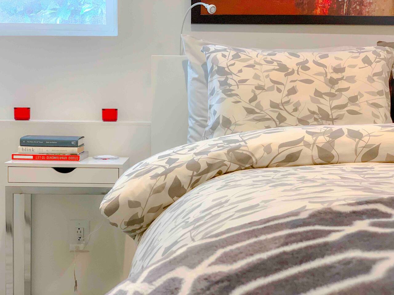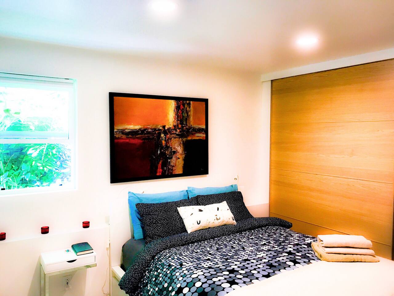 A private ground-floor Garden Queen Bed Guest Suite in our California Craftsman - with a separate entrance, surrounded by lush greenery. Outdoor patio with a lemon tree and koi fish pond. It’s minimalist, modern and peaceful. Located in the heart of Emeryville. Close to San Francisco, Berkeley, Oakland. Easy check-in | check-out! Perfect for business travelers. With its sunken elevation and clean lines - it’s designed with a comfort and a minimum impact in mind. FREE & EASY Street Parking!