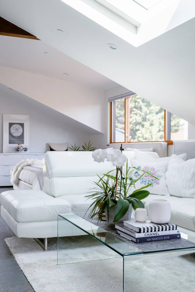 Check out our listings on the link below. Some are located in the same location. If you need to accommodate 2-6 coworkers or family members in the same location, please inquire. http://www.airbnb.com/p/modernlivinginsanfranciscobay This offer is for the Stargazer, the house' top floor attic apartment. MUST be able to CLIMB stairs. Ideal for business travelers and guests who are traveling light. 🧳 There are people living downstairs. Thank you for being considerate! We look for quiet and respectful guests to share our home with. Please be considerate and add to the serenity of our space. No loud noise. Quiet hours 8 pm - 8 am Please confirm the following information when sending a booking request, as it’s essential for both us and our insurance company to confirm your booking: 1. The PURPOSE of your trip / What brings you in town? 2. Total number of ALL guests? 3. Full NAMES ( first and last name ) and AGE of all guests who will be staying 4. Your approximate CHECK-IN / CHECK-OUT times, to ensure we are on the lookout for your arrival and ensure a smooth check-in and provide an assistance should you need it at check-in / check-out times. • FYI, our check-in time is: 4 pm • Our check-out time is: 11 am ***NOTE 🔻: • EARLY CHECK-IN: Subject to availability and a $25/hour fee paid via guest portal. Please request at booking or at least 48 hours in advance if needed. Same-day or short-notice requests cannot be accommodated. Early check-in only available when we are away and not using our home ourselves. • LATE CHECK-OUT : Subject to availability and a fee $25/h. It needs to be approved by us in writing at least 48 hours prior. 5. ✅ $500 Refundable AIRBNB SECURITY DEPOSIT Policy ADVISORY: We have $500 standard credit card security deposit, placed 2 days prior arrival and refunded 2 days after if all house rules are followed. It’s authorized via Hospitable - an Airbnb Preferred Authorized Partner. Your deposit is refundable in full unless there is a case of a damaged property! In such case, we reserved the right to communicate to you and Airbnb any damage and your deposit might be partially or fully claimed! In rare incidents of severely damaged property including but not limited to an artwork, you might owe more than your deposit is worth. We don’t charge for small stuff like a broken plate, etc. By booking our home, you agree to authorize the temporary security deposit credit card via our management software Hospitable, Official Airbnb Authorized Preferred Partner. *** Pros: Modern open-floor plan, sunny, spacious, beautiful, modern and energy-efficient home with plenty of storage, lovely views overlooking our beautiful gardens. Cons: Stairs involved - the reward is a tree-house feeling with tons of natural lights and gorgeous views overlooking the lush garden and our water Lilly koi fish pond. THANK YOU for treating your hosts, our neighbors and our home with kindness and respect! 🦋 • ALLERGIES DISCLAIMER: Guests with allergies are responsible for bringing any necessary medications or supplies to manage their condition. Our property is a pet-free and smoke-free environment, and we use mostly organic, natural, and harsh chemical-free cleaning supplies. Bedding is 100% cotton, and we use scent-free laundry wash pods. However, we cannot guarantee that our property is free from allergens, including but not limited to dust, pollen, or other potential triggers. While we maintain thorough cleaning protocols, we do not provide specialized allergen-free environments. By booking, you acknowledge that you assume full responsibility for managing your allergies and that we are not liable for any allergic reactions or related issues during your stay. Please carefully assess the suitability of our property for your needs before making a reservation. 🔻For long reservations of 7 days + we provide a STARTER PACK and guests are responsible for anything else they might need during their stay.🔻